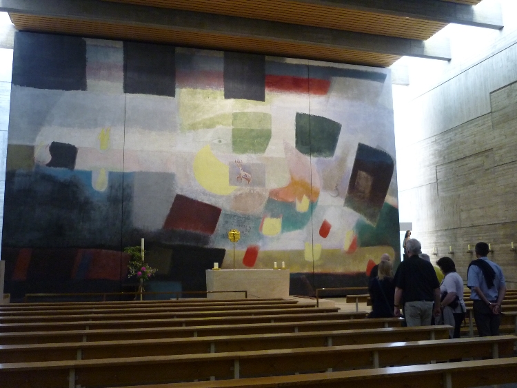 Am Nachmittag feierten die internationalen Pax Christi-Repräsentanten eine Liturgie in der Gedenkkirche Regina Martyrum, der zentralen Gedenkkirche der katholischen Christen in Deutschland. Die Kirche gibt seit 1963 dem Gedenken der katholischen Christen Deutschlands an die Blutzeugen, die in den dunklen Jahren von 1933 bis 1945 mit ihrem Leben für die Glaubens- und Gewissensfreiheit eingetreten sind, einen Ort.