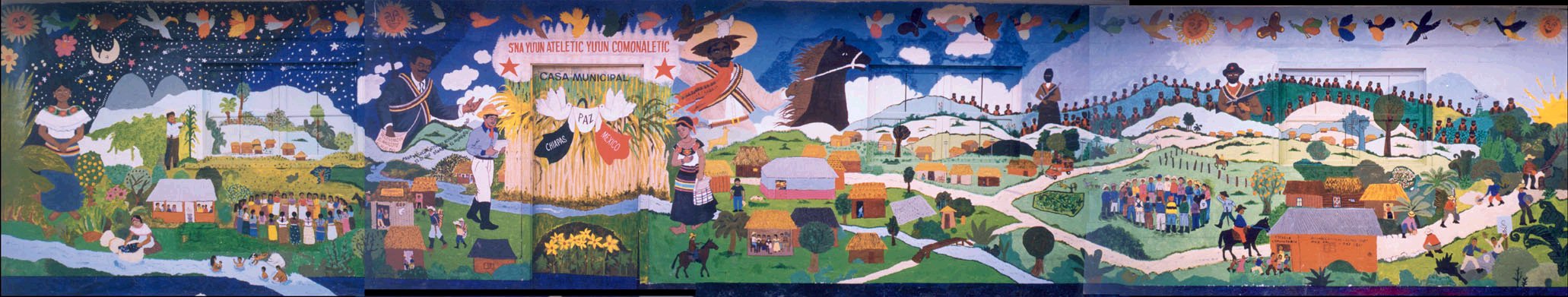 Bild: (Indígenas tzeltales de Chiapas, México y Sergio Valdez. http://www.ecn.org/estroja/mural.jpg)