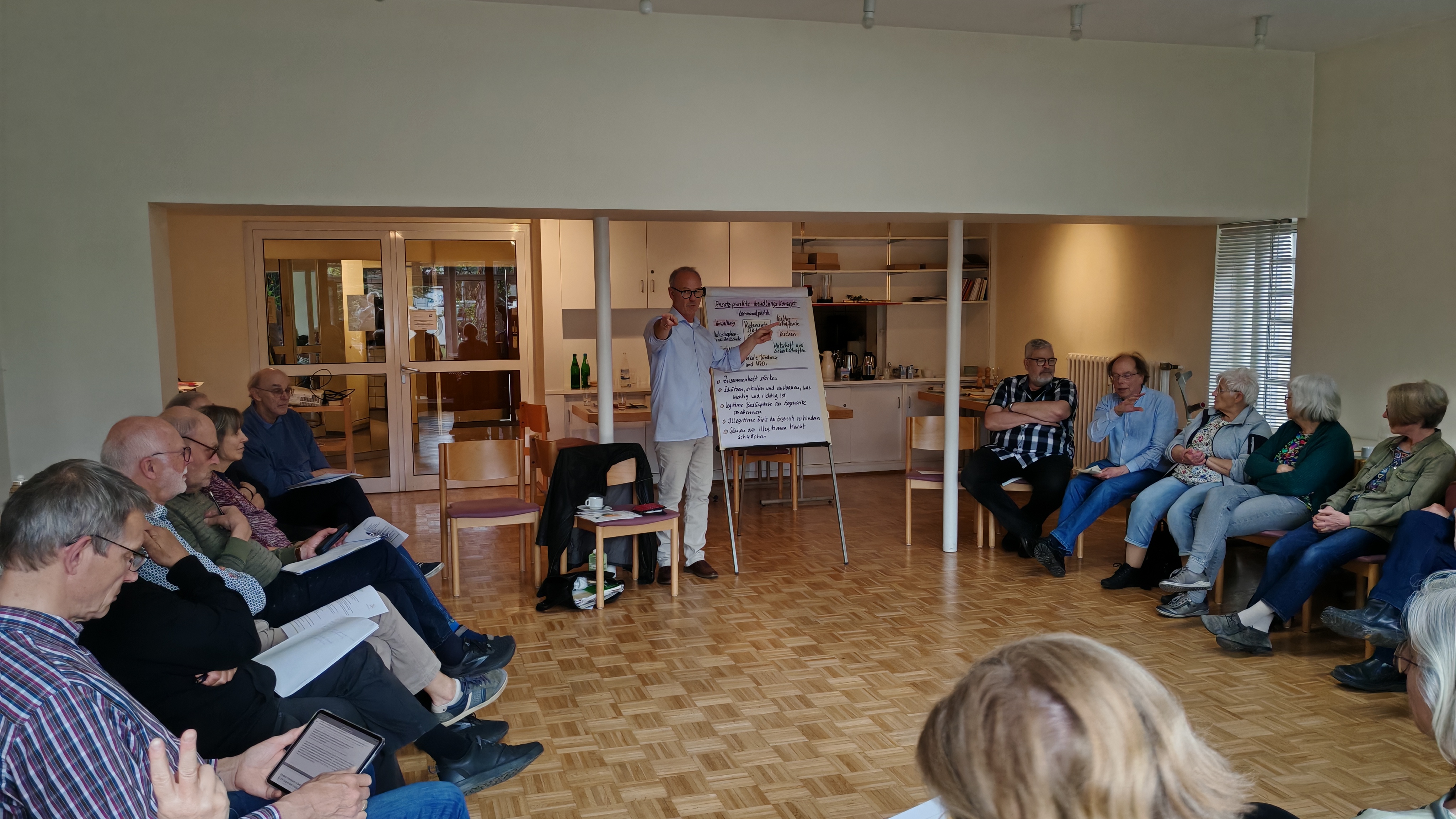 Im öffentlichen Studienteil "Wehrhaft ohne Waffen - wie geht das" brachte uns Joachim Mangold von "gewaltfrei handeln e.V." Theorie und Praxis der sozialen Verteidigung nahe.