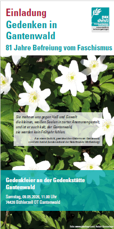Hier finden Sie den Flyer zur Gedenkfeier an der Gedenkstätte Gantenwald. Reichen Sie Ihn gerne an Interessierte in Ihrem Umfeld weiter (zum Download auf das Bild klicken):